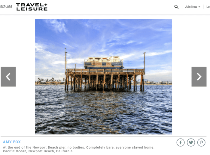 The image of the end of the pier was visualized and created in 2020, when no one was allowed access for enjoyment. A bit of a timepiece if you will. In June of 2021, it was selected as the Photo of the Day for Travel + Leisure online.